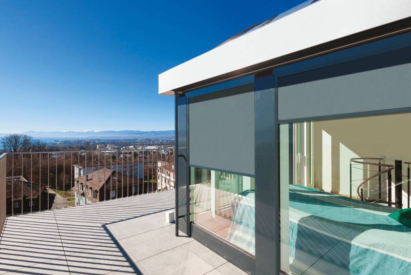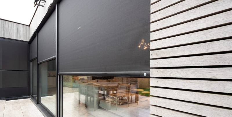 Il s'agit d'un store extérieur constitué d'une toile microperforée agissant comme un bouclier thermique et préservant des regards extérieurs tout en conservant une bonne visibilité de l'intérieur.